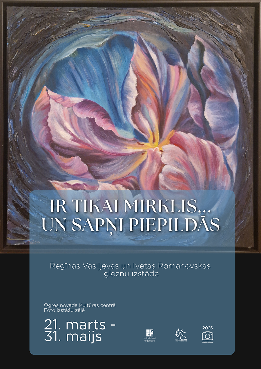Ogres novada Kultūras centra Foto izstāžu zālē līdz 31. maijam apskatāma Regīnas Vasiļjevas un Iveta Romanovskas gleznu izstāde IR TIKAI MIRKLIS.. UN SAPŅI PIEPILDĀS.