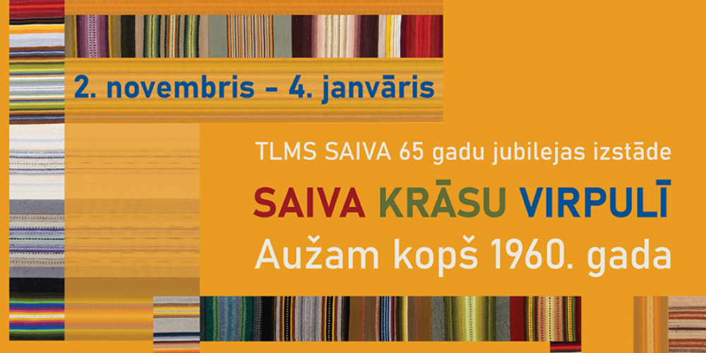 Tautas lietišķās mākslas studija SAIVA aicina uz savas 65 gadu jubilejas izstādes “Saiva krāsu virpulī” atklāšanu 1. novembrī plkst. 12.00 Ogres novada Kultūras centra Izstāžu zālē.