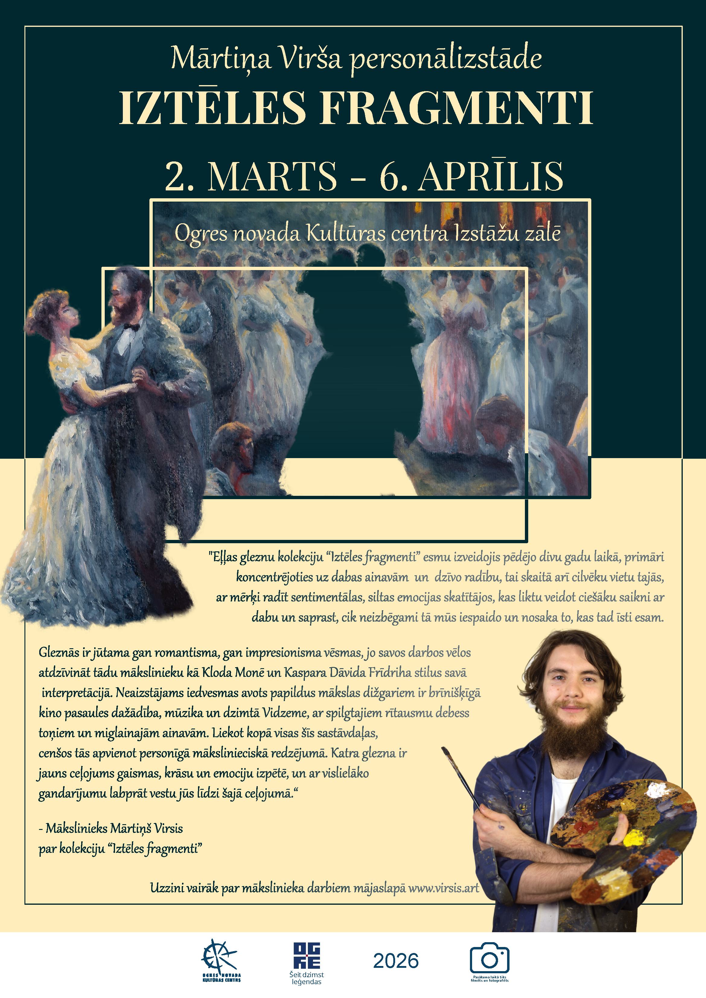 Izstāde bez maksas apskatāma no 2. marta līdz 6. aprīlim Ogres novada Kultūras centra Izstāžu zālē