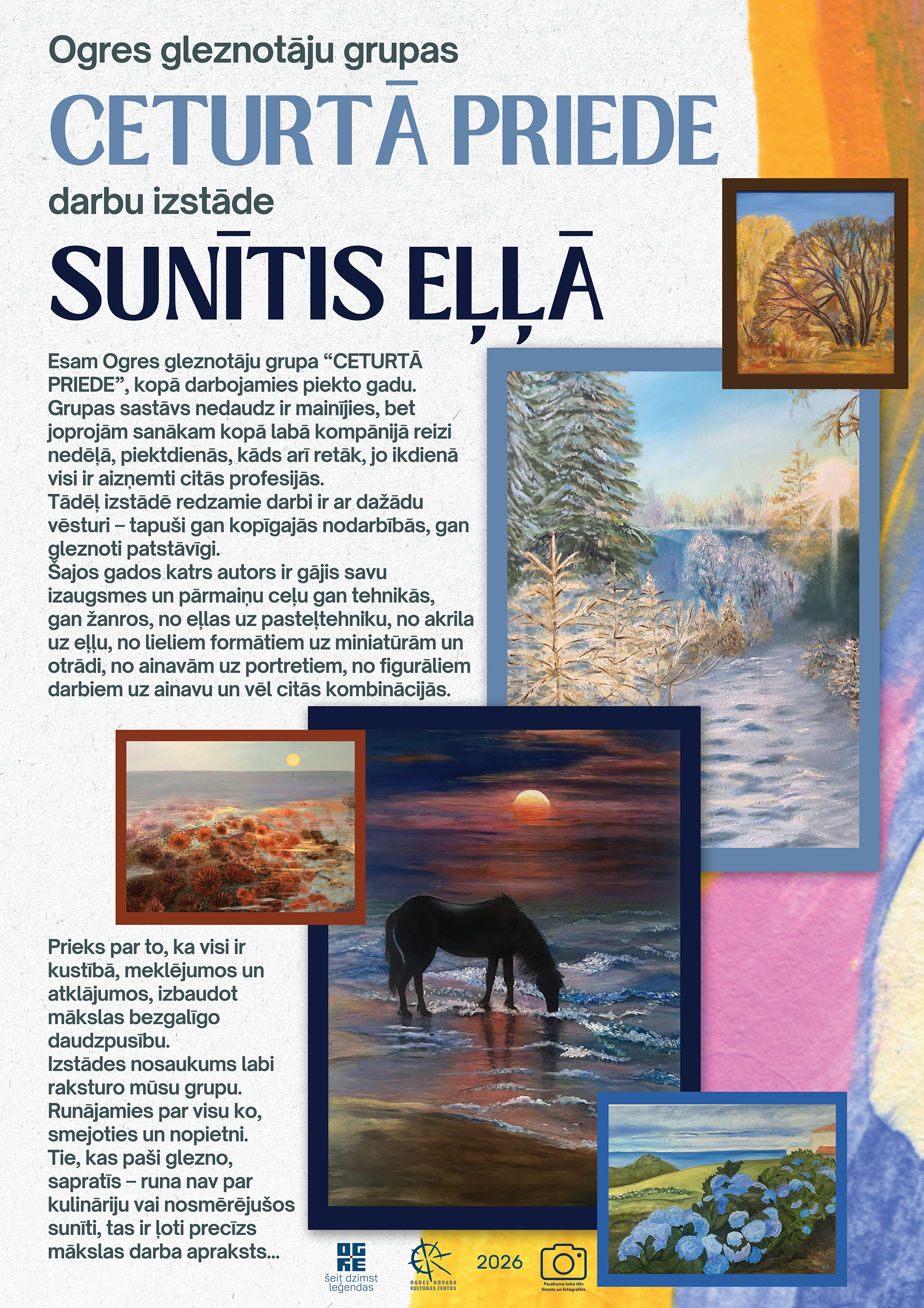 Ogres gleznotāju grupas CETURTĀ PRIEDE darbu izstāde SUNĪTIS EĻĻĀ