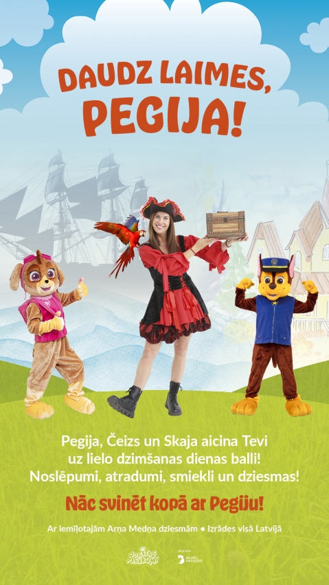 Klāt ir Pegijas dzimšanas diena, par godu kurai tiek rīkotas svinības, bet līdz tam vēl būs daudzi interesanti piedzīvojumi. Par godu Pegijas jubilejai, iestudēs jaunu bērnu izrādi "Daudz laimes, Pegija!", kurā prieku un piedzīvojumus skatītājiem dāvās ne tikai Pirātu meitene Pegija, bet arī divi mūsdienu bērnu elki – Ķepu patruļas varoņi Skaja un Čeizs.