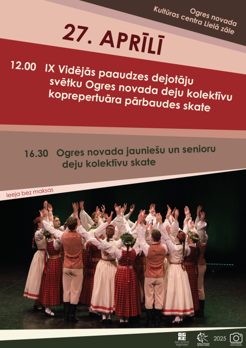 IX Vidējās paaudzes dejotāju svētku Ogres novada deju kolektīvu koprepertuāra pārbaudes skate un jauniešu un senioru Ogres novada deju kolektīvu skate