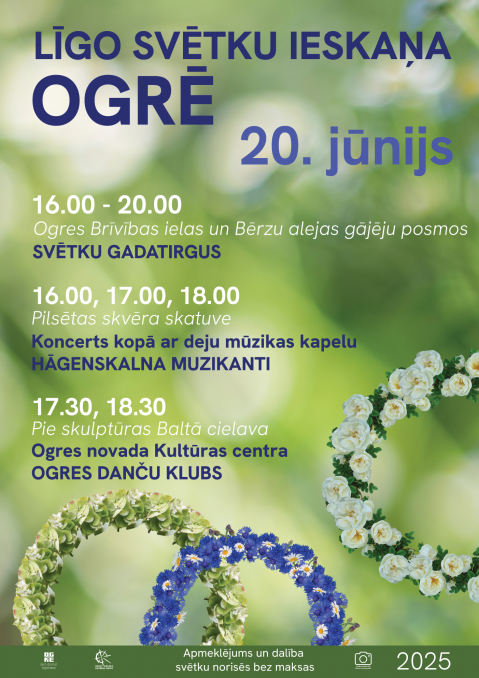20. jūnijā Ogrē ielīgošanas svētki ar tirgus čalu, dziesmām un dančiem!
