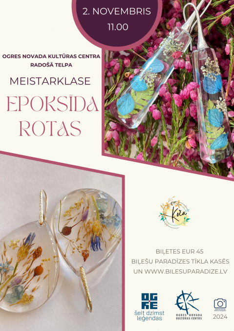 2. novembrī plkst. 11.00 Ogres novada Kultūras centra Radošajā telpā aicinām smelties iedvesmu un apgūt, ko jaunu meistarklasē EPOKSĪDA ROTAS.