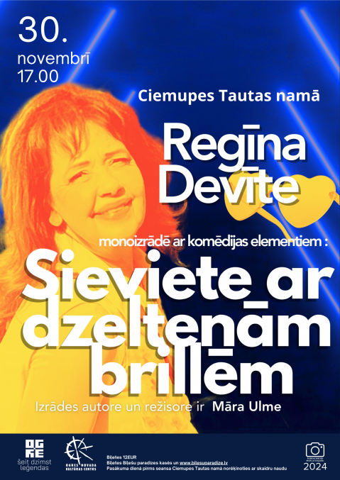 Regīnas Devītes monoizrāde SIEVIETE AR DZELTENĀM BRILLĒM