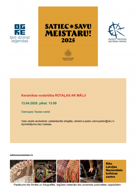 Satiec savu meistaru 2025 keramikas nodarbība ROTAĻAS AR MĀLU
