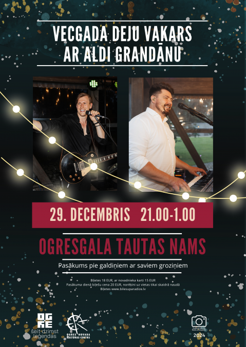 29. decembrī plkst. 21.00 - 1.00 Ogresgala Tautas namā Vecgada deju vakars ar Aldi Grandānu.