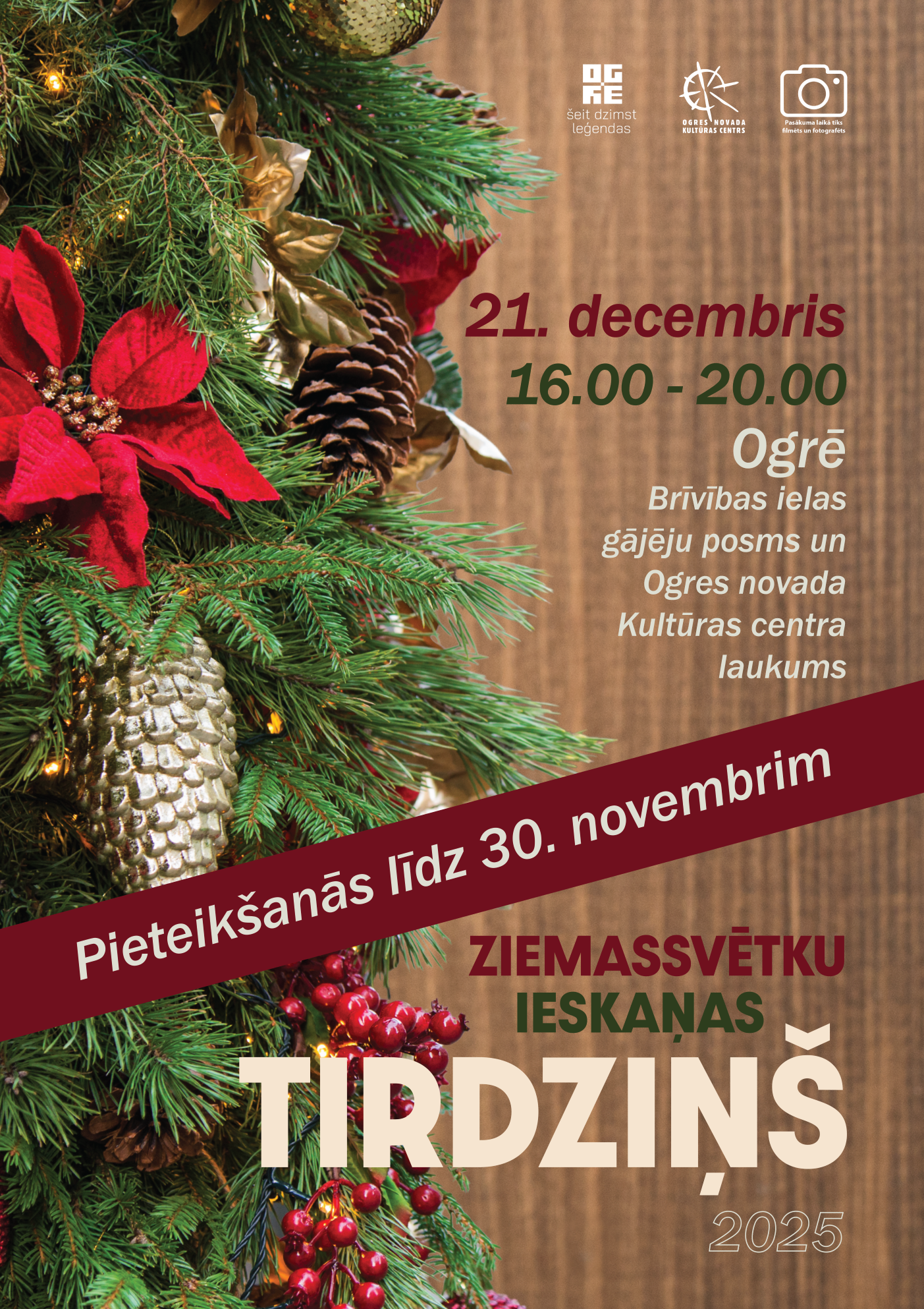Ogres novada Kultūras centrs 2025. gada 21. decembrī no plkst. 16.00 līdz plkst. 20.00. Brīvības ielas gājēju posmā un Ogres novada Kultūras centra laukumā organizēs ZIEMASSVĒTKU IESKAŅAS TIRDZIŅU.