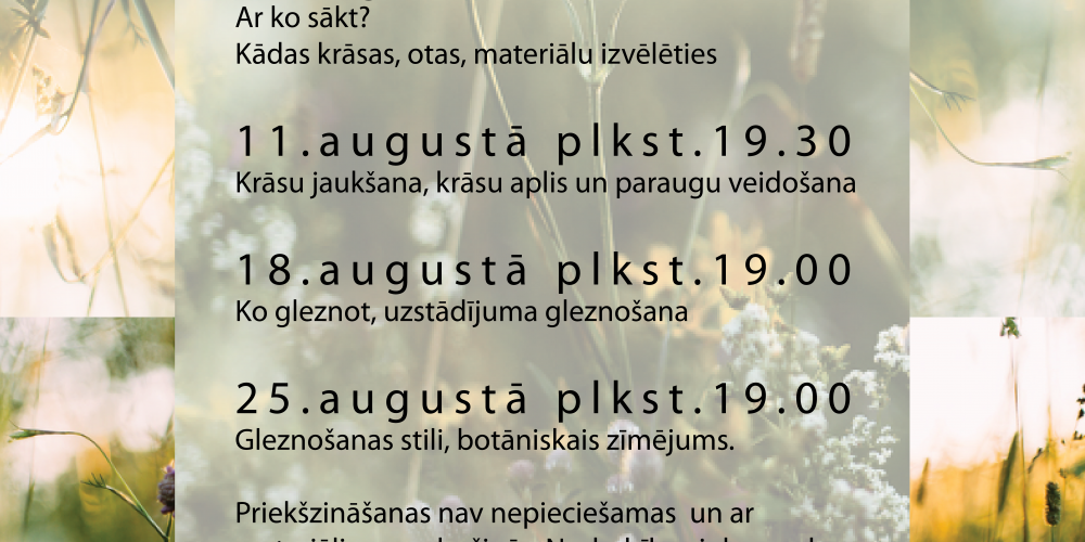 Meistarklašu dalībnieki gūs atbildes uz jautājumiem - ar ko sākt, kādas krāsas, otas, materiālu izvēlēties, mācīsies jaukt toņus, apgūs dažādus gleznošanas stilus un vēl citas noderīgas prasmes.