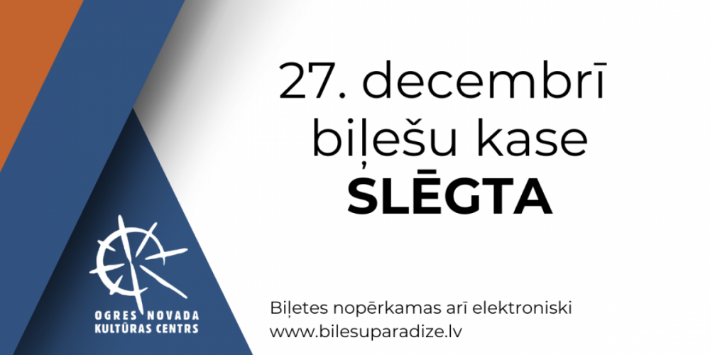 Kase nestrādā svētku dienās, izņemot dienas, kad Ogres novada Kultūras centrā ir pasākumi, uz kuriem pieejamas biļetes.