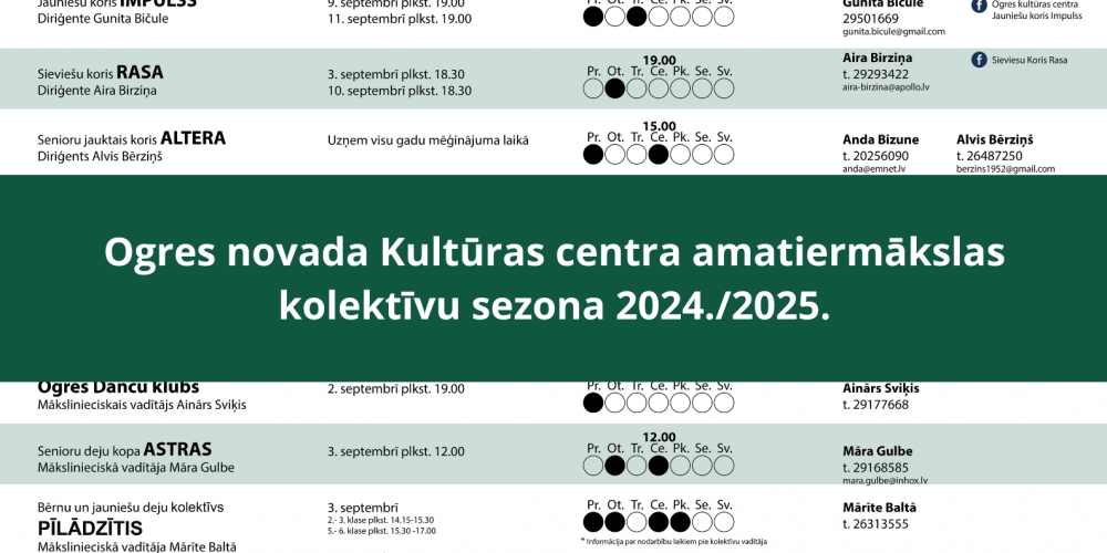 Uzsākot jauno sezonu, Ogres novada Kultūras centra amatiermākslas kolektīvi organizē esošo dalībnieku tikšanās, kā arī aicina savam pulkam pievienoties jaunus dalībniekus.