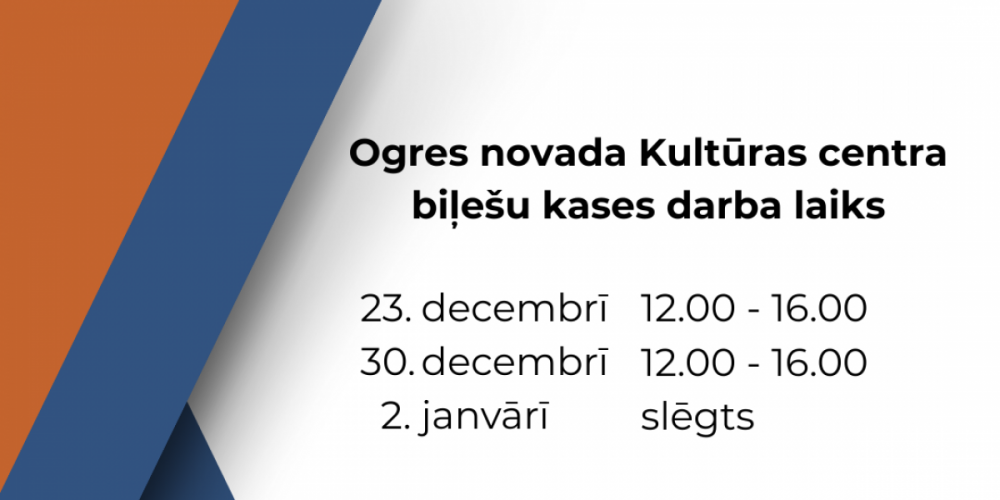 Informējam apmeklētājus, ka Ogres novada Kultūras centra biļešu kases darba laiks mainīts: