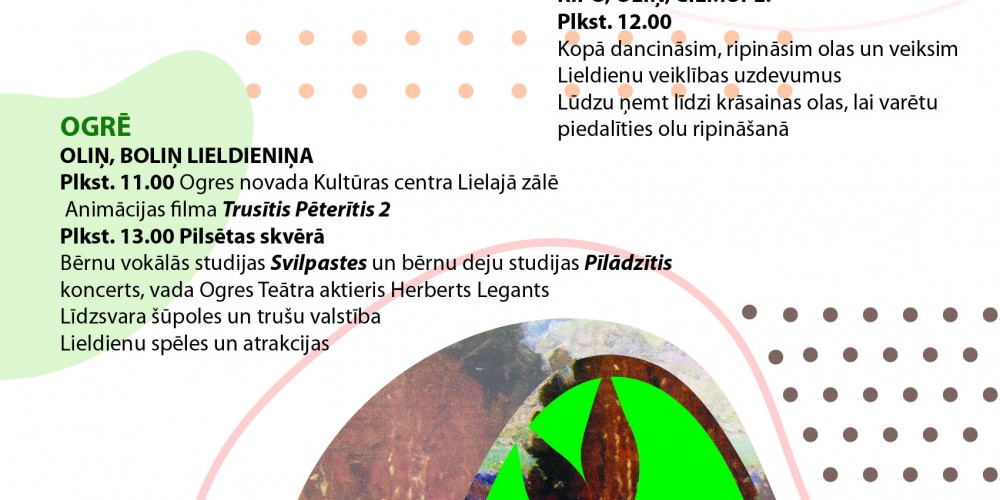 Ar konkursiem, spēlēm, rotaļām un daudziem citiem aizraujošiem notikumiem 17. aprīlī Ogrē, Ogresgalā un Ciemupē notiks Lieldienu svinības.