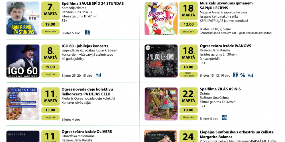 Kultūras notikumi martā Ogres novada Kultūras centrā: