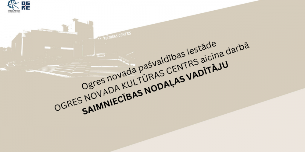 Ogres novada pašvaldības iestāde “Ogres novada Kultūras centrs” aicina darbā saimniecības nodaļas vadītāju