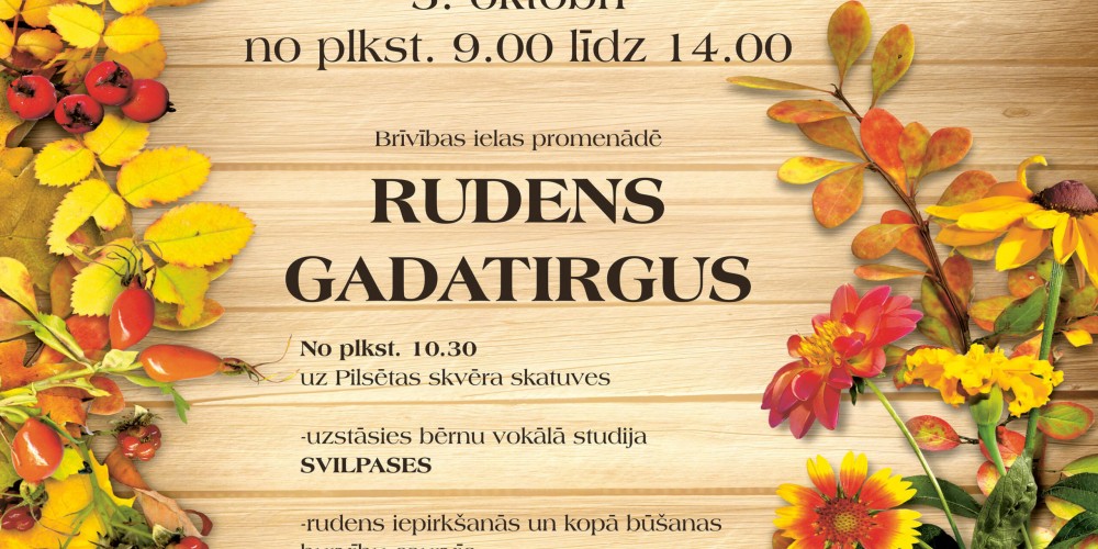 3. oktobrī no pulksten 09.00 līdz 14.00 Brīvības ielas promenādē norisināsies RUDENS GADATIRGUS, kurā savu produkciju piedāvās amatu meistari un tirgotāji no dažādiem Latvijas novadiem.