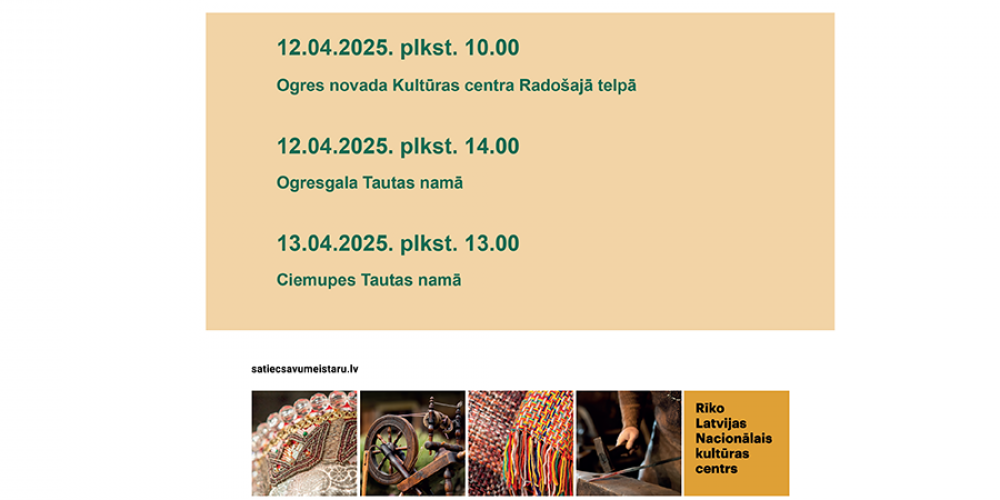 SATIEC SAVU MEISTARU 2025 Ogrē, Ciemupē un Ogresgalā