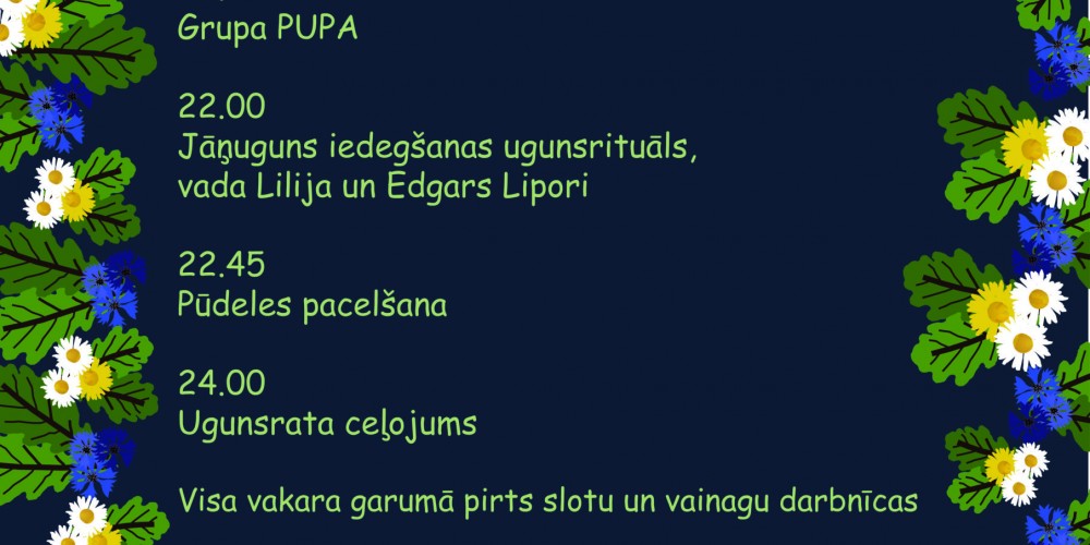 Pasākuma apmeklētājiem būs iespēja iemācīties vīt ziedu vai zāļu vainagus un nogaršot uz ugunskura vārītu Jāņu sieru.