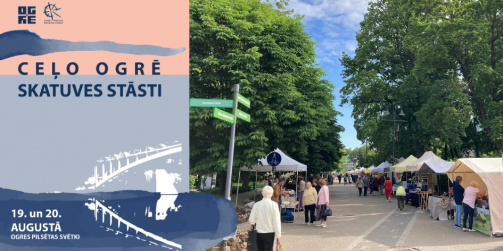 20.augustā Ogres pilsētas svētkos CEĻO OGRĒ. SKATUVES STĀSTI. no pulksten 11.00 līdz 16.00 Ogrē, Brīvības ielas gājēju posmā un Bērzu alejā norisināsies tirdziņš.